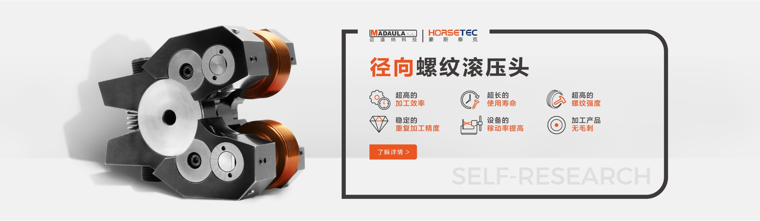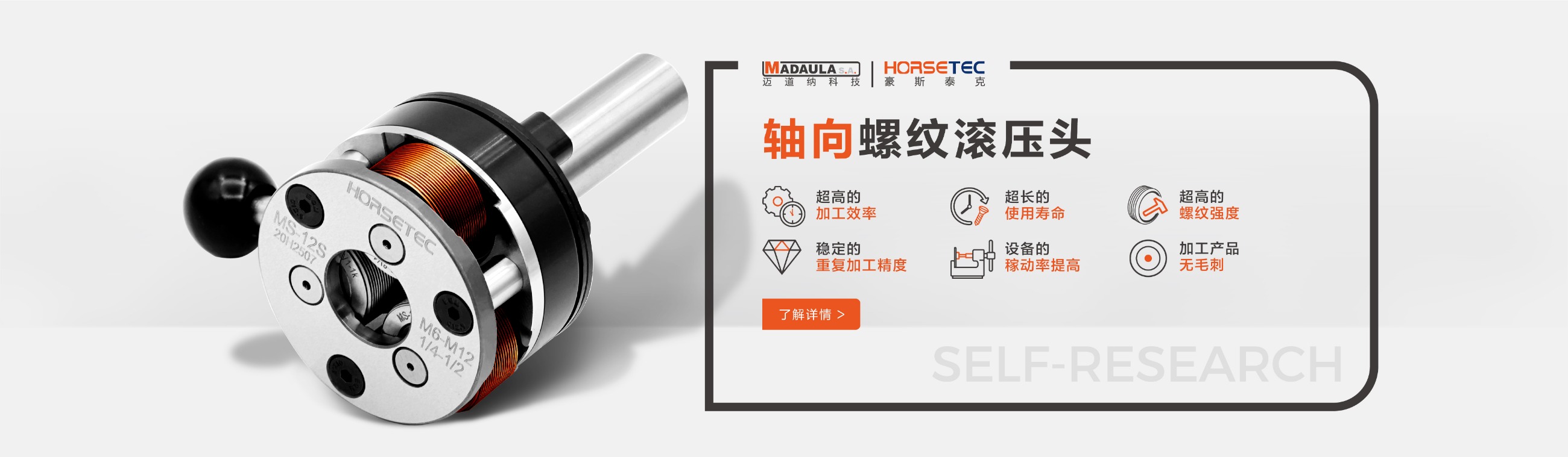 很多做機械的對螺紋滾壓頭都不陌生,它的功能和優(yōu)勢也是有口皆碑的,所以現在有越來越多的人愿意選擇HORSETEC螺紋滾壓工具來滾壓螺紋,而我們常見到的螺紋滾壓工具是采用鋼材料制作而成的一種滾螺紋加工工具,成功沿襲傳統的螺紋滾壓頭的所有優(yōu)勢,比如高效率、高精度、高強度,除此之外,螺紋滾壓頭可以定制您的專屬logo,不僅有效提升了產品的檔次,給使用者帶來不錯利益。今天要給大家說一說高質量的螺紋滾2022-09-13